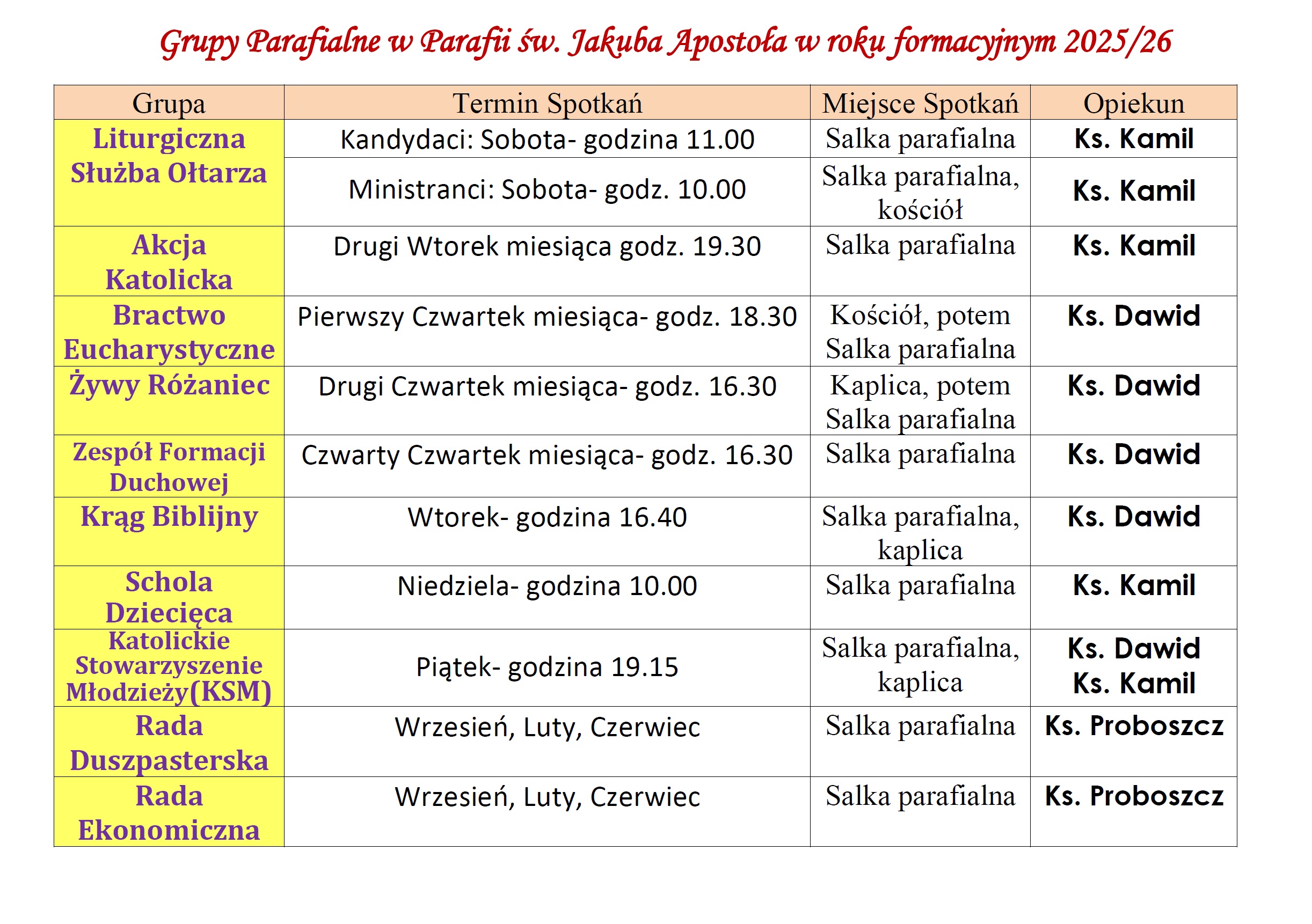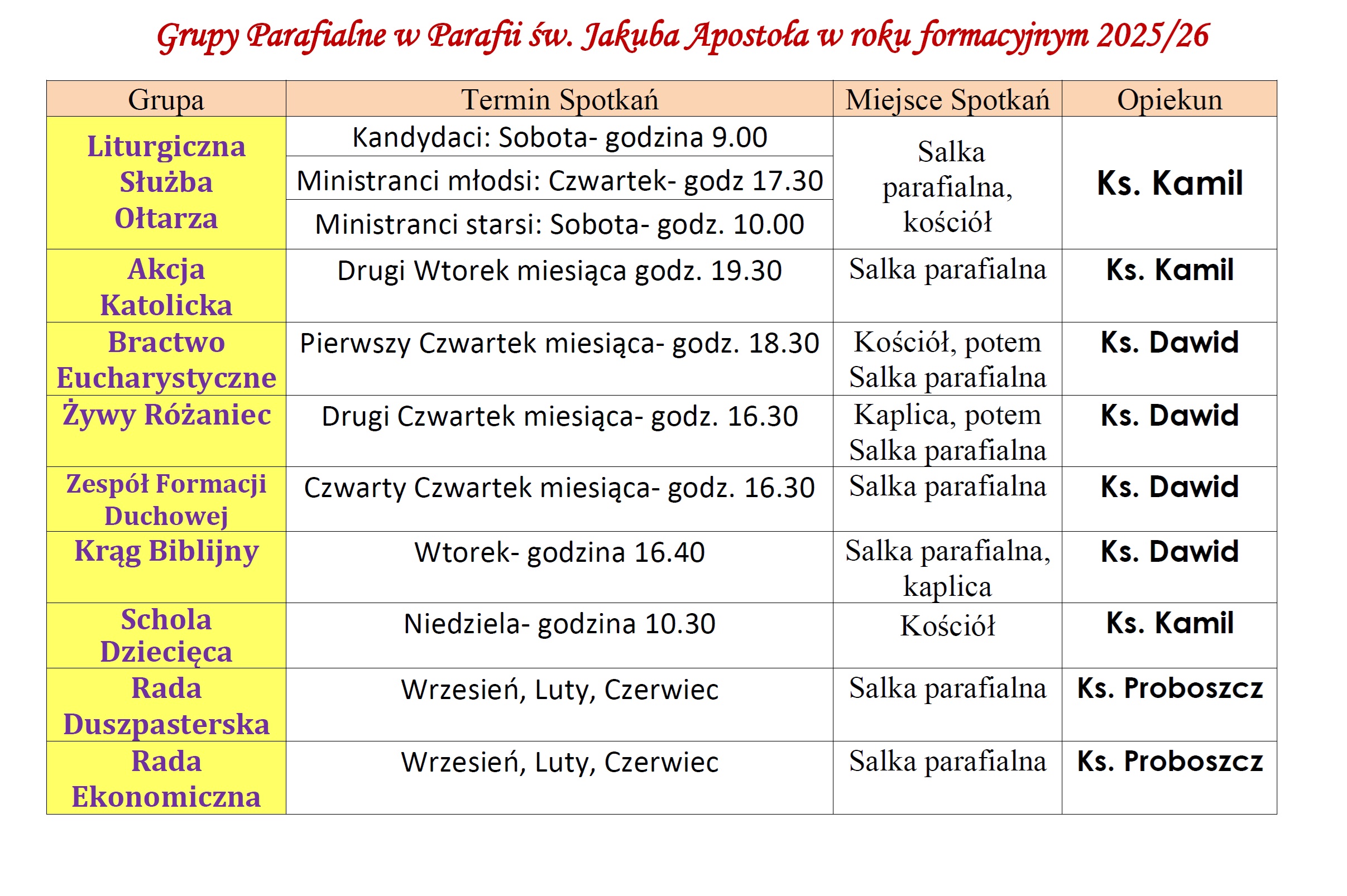 Informacje duszpasterskie