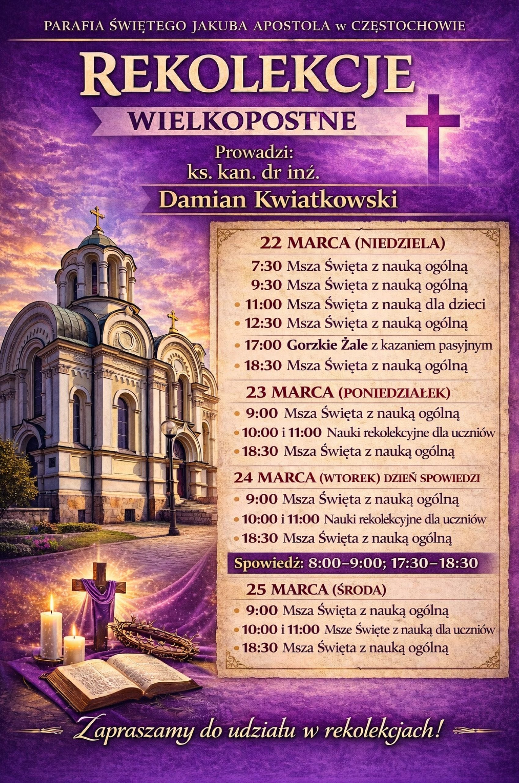 18 mar 2026 Rekolekcje Wielkopostne 22-25 marca 2026 przez Duszpasterz | wpis w: Informacje duszpasterskie | 0